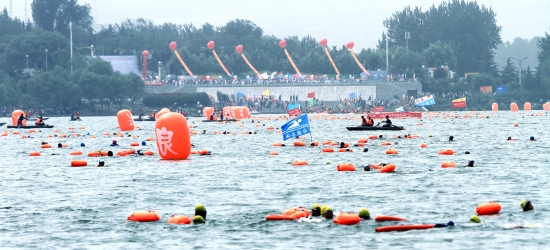 千人橫渡,萬(wàn)人觀看,與母親河親密接觸。5月25日上午,2014中國(guó)(三門峽)橫渡母親河活動(dòng)在天鵝湖國(guó)家城市濕地公園黃河水域成功舉辦,全國(guó)28個(gè)省(區(qū)、市)及中國(guó)香港、中國(guó)澳門79個(gè)城市105支代表隊(duì)2658人參加橫渡,創(chuàng)造了全國(guó)公開(kāi)水域游泳的新紀(jì)錄。