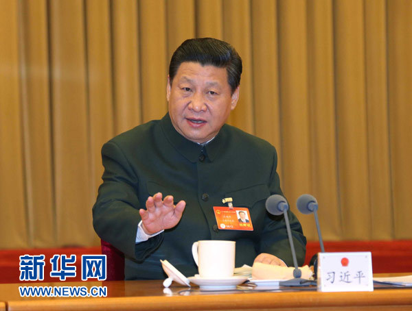 3月11日,中共中央總書記、國家主席、中央軍委主席習(xí)近平出席十二屆全國人大二次會議解放軍代表團(tuán)全體會議并發(fā)表重要講話。新華社記者李剛攝